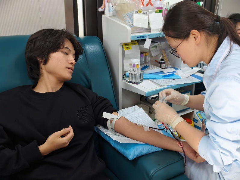 2023级物流管理专业本科生刘明生、2025级城市管理专业本科生黄增洋第一时间响应,主动前往血站为在苏大附属第四医院住院的沈老师定向献血,以青春热血为恩师点燃生命希望。