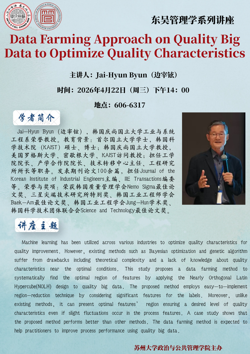 讲座预告丨Data Farming Approach on Quality Big Data to Optimize Quality Characteristics